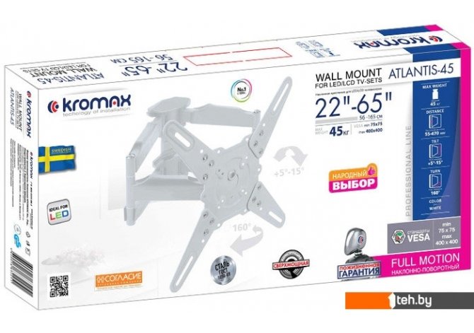 Фотографии, описание и технические характеристики модели кронштейна Kromax ATLANTIS-45 (белый) взяты из открытых источников, официального сайта производителя или представительства Kromax в Республике Беларусь.