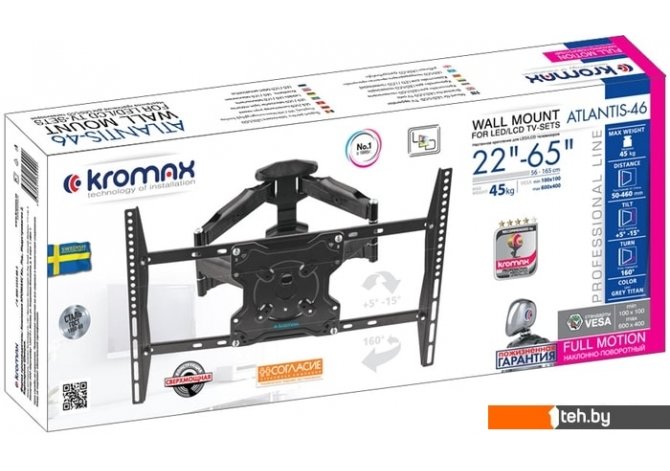 Фотографии, описание и технические характеристики модели кронштейна Kromax ATLANTIS-46 (серый) взяты из открытых источников, официального сайта производителя или представительства Kromax в Республике Беларусь.