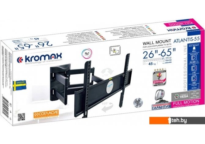 Фотографии, описание и технические характеристики модели кронштейна Kromax ATLANTIS-55 взяты из открытых источников, официального сайта производителя или представительства Kromax в Республике Беларусь.