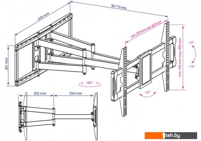 | Расстояние от стены (потолка) | 80 — 710 мм |