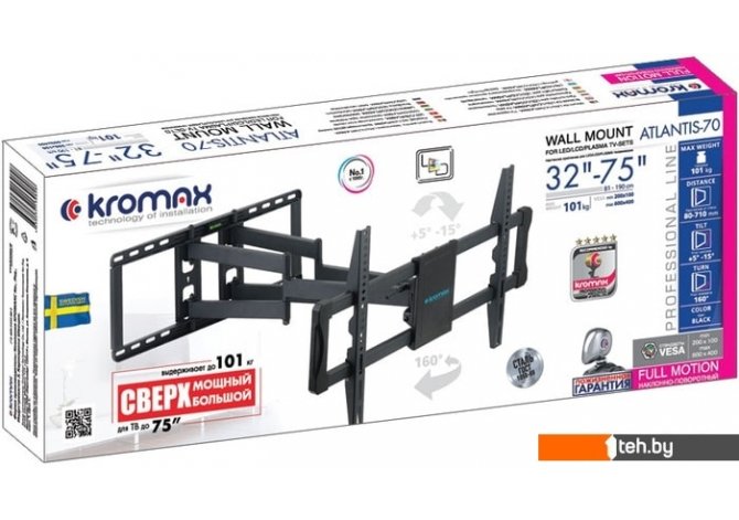 Фотографии, описание и технические характеристики модели кронштейна Kromax ATLANTIS-70 (черный) взяты из открытых источников, официального сайта производителя или представительства Kromax в Республике Беларусь.