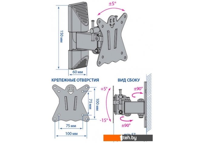 | Расстояние от стены (потолка) | 57 — 110 мм |