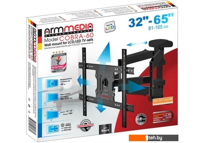 Фотографии, описание и технические характеристики модели кронштейна Arm Media COBRA-60 (черный) взяты из открытых источников, официального сайта производителя или представительства Arm Media в Республике Беларусь.