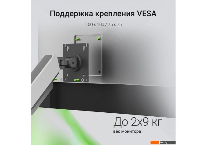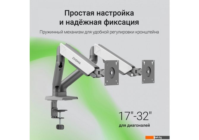 | Информация | - Кронштейн для мониторов Digma D-MM102D предназначен для установки двух мониторов с диагональю от 17 до 32 дюймов. Он обеспечивает надежное крепление на столе с помощью струбцинного механизма и позволяет легко регулировать положение каждого монитора. - Модель поддерживает стандарты VESA 75x75 и 100x100, оснащена кабель-органайзером для аккуратной укладки проводов и позволяет регулировать высоту мониторов до 450 мм. Пружинный механизм облегчает настройку положения, а углы наклона от -90 до 90° и поворота до 360° дают широкие возможности для индивидуальной настройки. - Прочный металлический корпус выдерживает суммарную нагрузку до 18 кг (по 9 кг на каждое крепление). Кронштейн выполнен в современном сером цвете и подходит для организации рабочего пространства как дома, так и в офисе. |