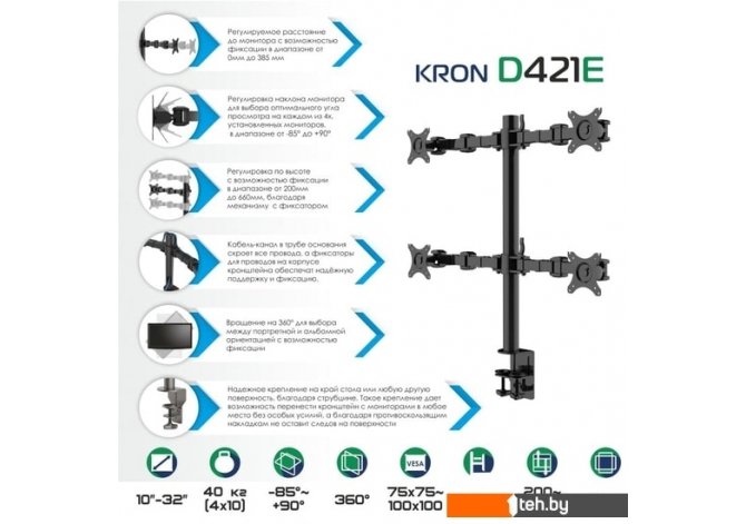 Фотографии, описание и технические характеристики модели кронштейна Onkron D421E (черный) взяты из открытых источников, официального сайта производителя или представительства Onkron в Республике Беларусь.