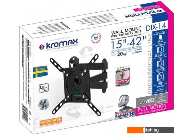 Фотографии, описание и технические характеристики модели кронштейна Kromax DIX-14 (черный) взяты из открытых источников, официального сайта производителя или представительства Kromax в Республике Беларусь.