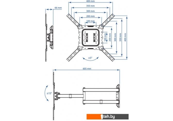 | Расстояние от стены (потолка) | 66 — 605 мм |