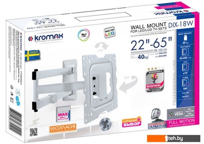 Фотографии, описание и технические характеристики модели кронштейна Kromax DIX-18W (белый) взяты из открытых источников, официального сайта производителя или представительства Kromax в Республике Беларусь.