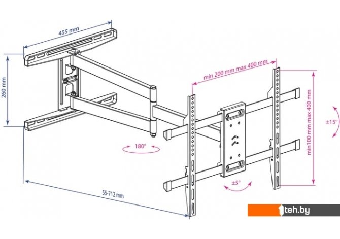 | Расстояние от стены (потолка) | 55 — 712 мм |