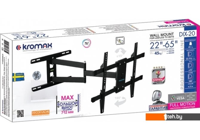 Фотографии, описание и технические характеристики модели кронштейна Kromax DIX-20 (черный) взяты из открытых источников, официального сайта производителя или представительства Kromax в Республике Беларусь.