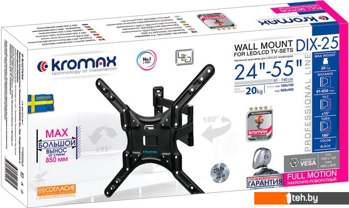 Фотографии, описание и технические характеристики модели кронштейна Kromax DIX-25 (черный) взяты из открытых источников, официального сайта производителя или представительства Kromax в Республике Беларусь.