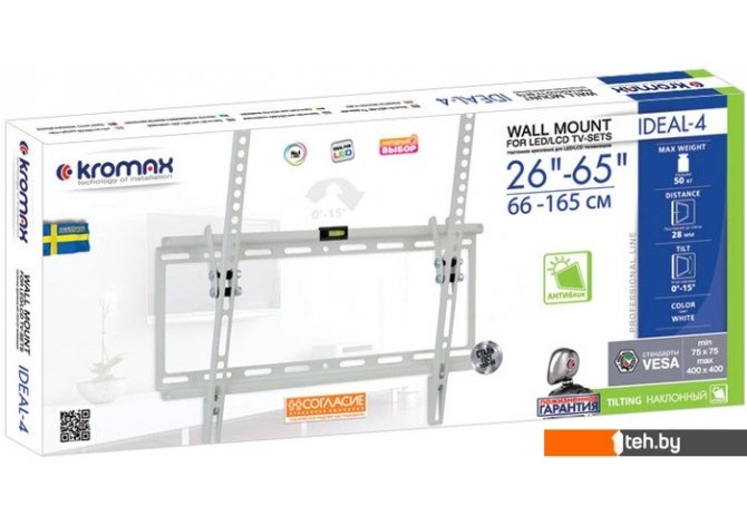 Фотографии, описание и технические характеристики модели кронштейна Kromax IDEAL-4W (белый) взяты из открытых источников, официального сайта производителя или представительства Kromax в Республике Беларусь.