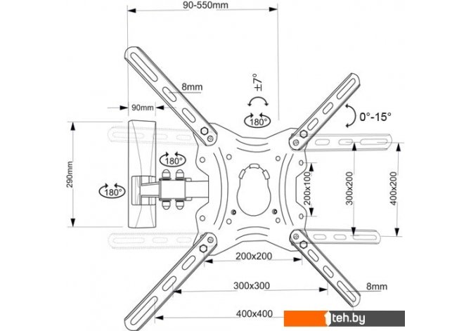 | Расстояние от стены (потолка) | 90 — 550 мм |