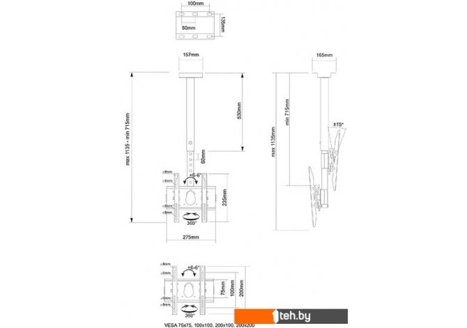 | Расстояние от стены (потолка) | 715 — 1 135 мм |