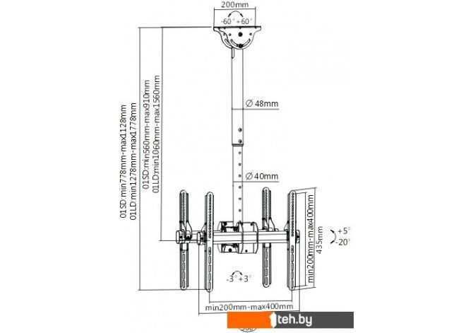 | Расстояние от стены (потолка) | 560 — 910 мм |