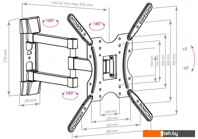 | Расстояние от стены (потолка) | 62 — 422 мм |