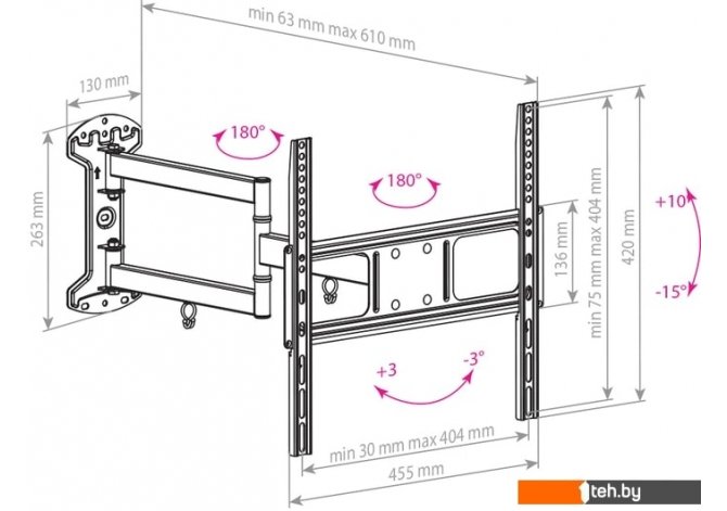 | Расстояние от стены (потолка) | 63 — 610 мм |