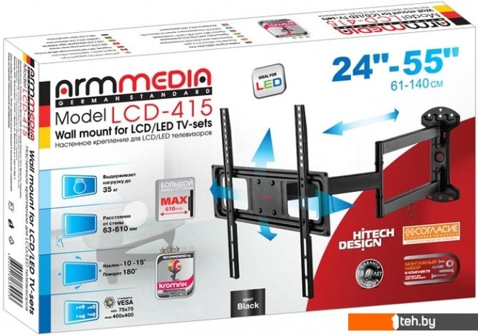 Фотографии, описание и технические характеристики модели кронштейна Arm Media LCD-415 взяты из открытых источников, официального сайта производителя или представительства Arm Media в Республике Беларусь.