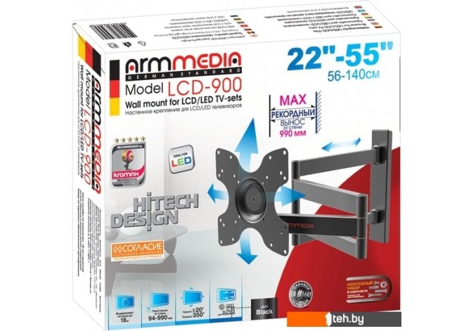 Фотографии, описание и технические характеристики модели кронштейна Arm Media LCD-900 взяты из открытых источников, официального сайта производителя или представительства Arm Media в Республике Беларусь.