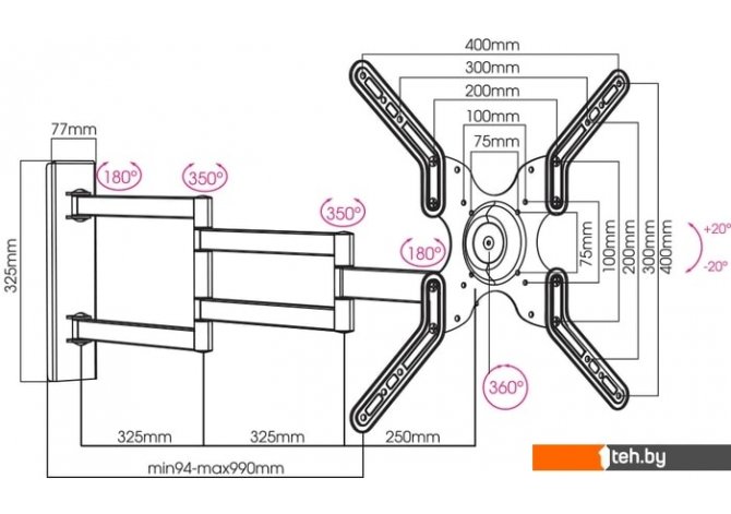 | Расстояние от стены (потолка) | 94 — 990 мм |