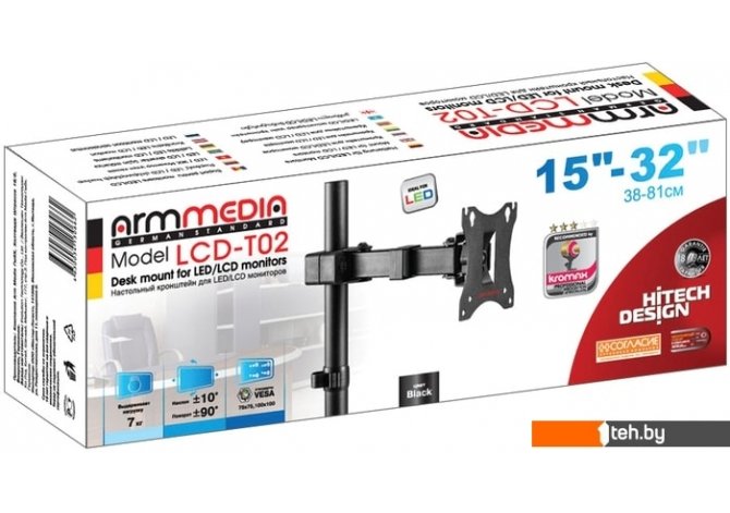 Фотографии, описание и технические характеристики модели кронштейна Arm Media LCD-T02 взяты из открытых источников, официального сайта производителя или представительства Arm Media в Республике Беларусь.