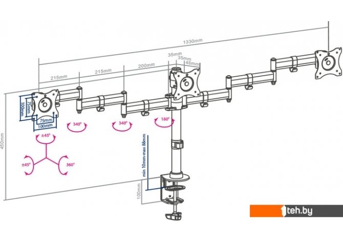 | Максимальная нагрузка | 30 кг (по 10 на каждый монитор) |
