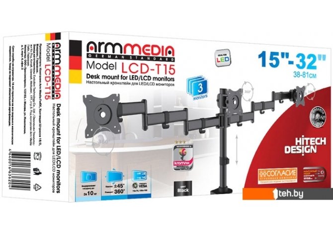 Фотографии, описание и технические характеристики модели кронштейна Arm Media LCD-T15 взяты из открытых источников, официального сайта производителя или представительства Arm Media в Республике Беларусь.