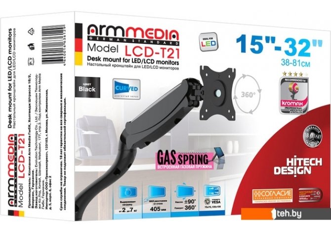 Фотографии, описание и технические характеристики модели кронштейна Arm Media LCD-T21 (черный) взяты из открытых источников, официального сайта производителя или представительства Arm Media в Республике Беларусь.
