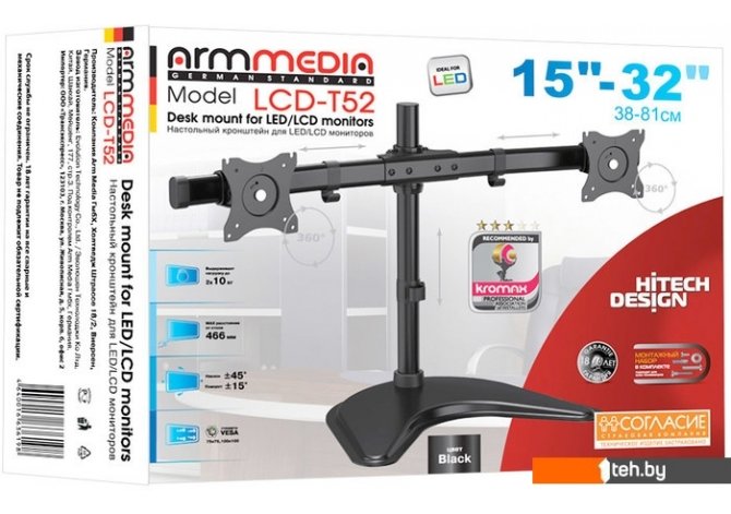 Фотографии, описание и технические характеристики модели кронштейна Arm Media LCD-T52 взяты из открытых источников, официального сайта производителя или представительства Arm Media в Республике Беларусь.