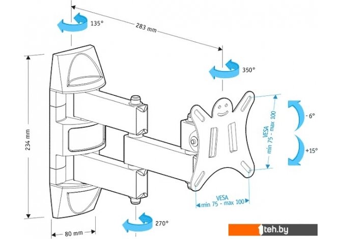 | Расстояние от стены (потолка) | 117 — 283 мм |
