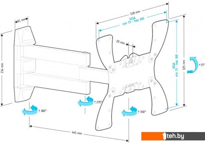 | Расстояние от стены (потолка) | 60 — 445 мм |