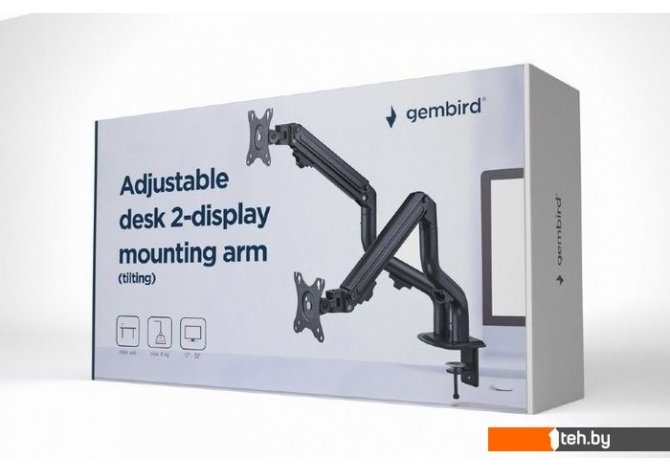 Фотографии, описание и технические характеристики модели кронштейна Gembird MA-DA2-02 взяты из открытых источников, официального сайта производителя или представительства Gembird в Республике Беларусь.