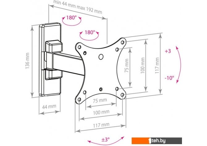 | Расстояние от стены (потолка) | 44 — 192 мм |