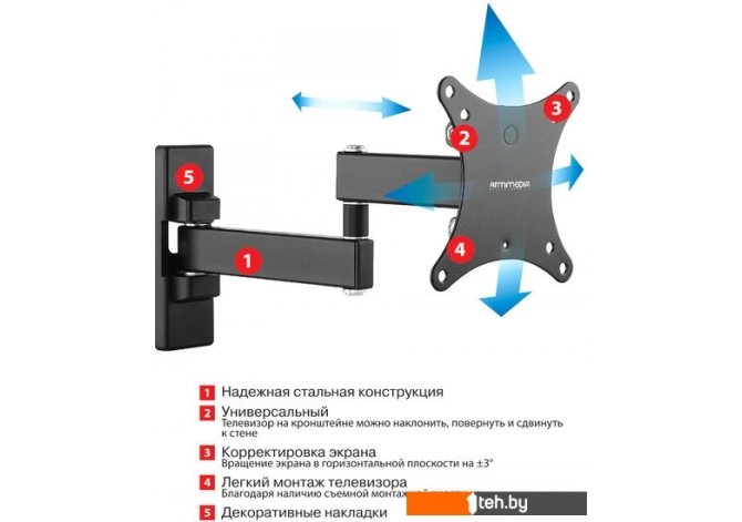Фотографии, описание и технические характеристики модели кронштейна Arm Media MARS-2 взяты из открытых источников, официального сайта производителя или представительства Arm Media в Республике Беларусь.