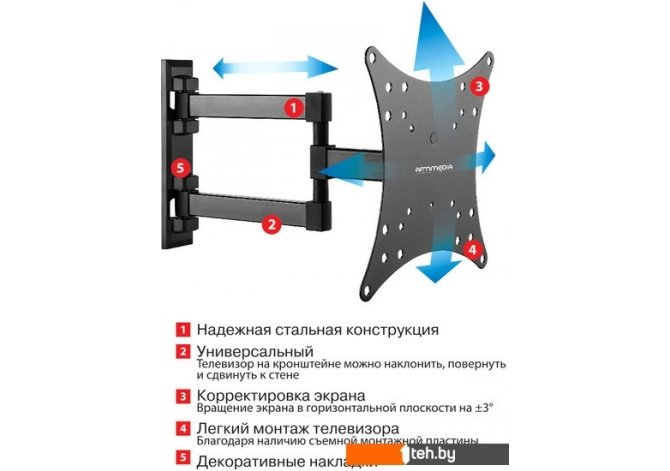 Фотографии, описание и технические характеристики модели кронштейна Arm Media MARS-4 взяты из открытых источников, официального сайта производителя или представительства Arm Media в Республике Беларусь.