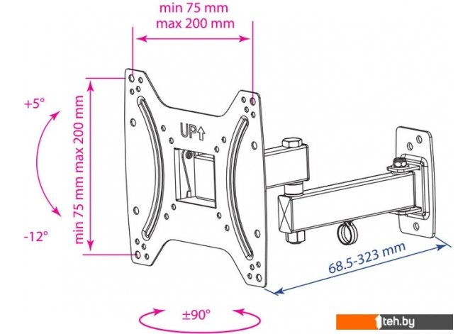 | Расстояние от стены (потолка) | 68.5 — 323 мм |
