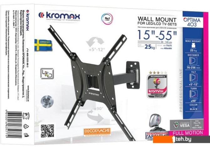 Фотографии, описание и технические характеристики модели кронштейна Kromax OPTIMA-403 (черный) взяты из открытых источников, официального сайта производителя или представительства Kromax в Республике Беларусь.