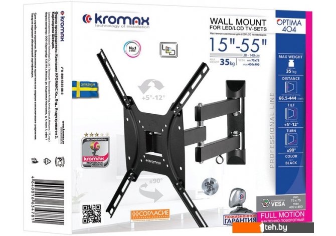Фотографии, описание и технические характеристики модели кронштейна Kromax OPTIMA-404 (черный) взяты из открытых источников, официального сайта производителя или представительства Kromax в Республике Беларусь.