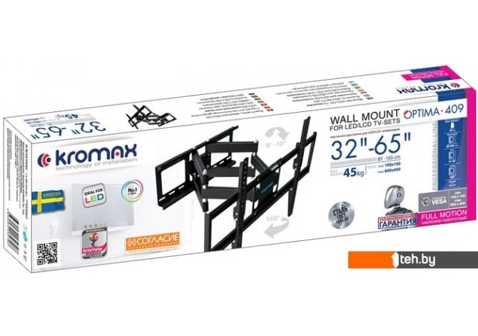 Фотографии, описание и технические характеристики модели кронштейна Kromax Optima-409 (черный) взяты из открытых источников, официального сайта производителя или представительства Kromax в Республике Беларусь.