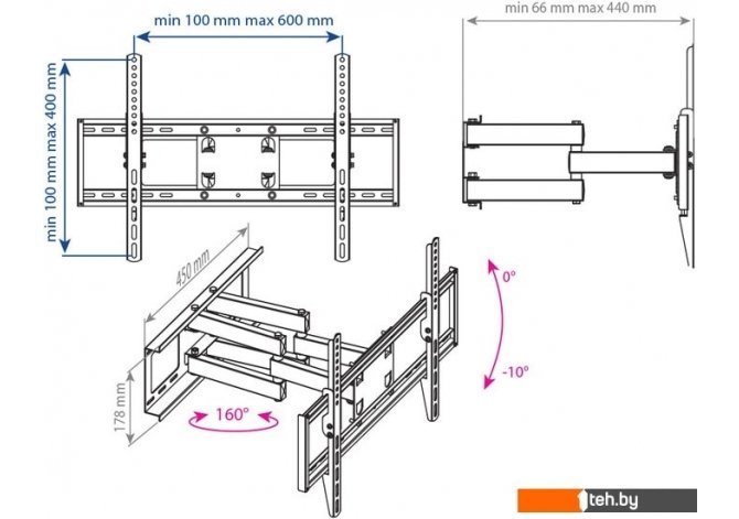 | Расстояние от стены (потолка) | 66 — 440 мм |