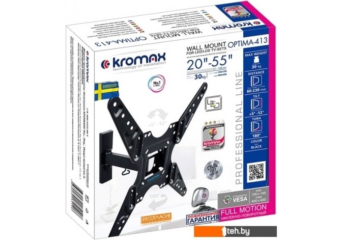 Фотографии, описание и технические характеристики модели кронштейна Kromax Optima-413 (черный) взяты из открытых источников, официального сайта производителя или представительства Kromax в Республике Беларусь.