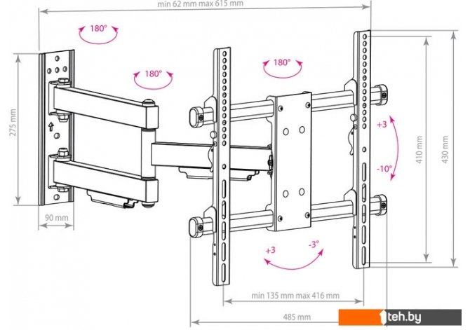 | Расстояние от стены (потолка) | 62 — 615 мм |