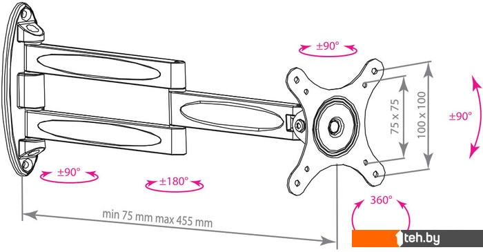 Расстояние от стены (потолка) | 75 — 455 мм |