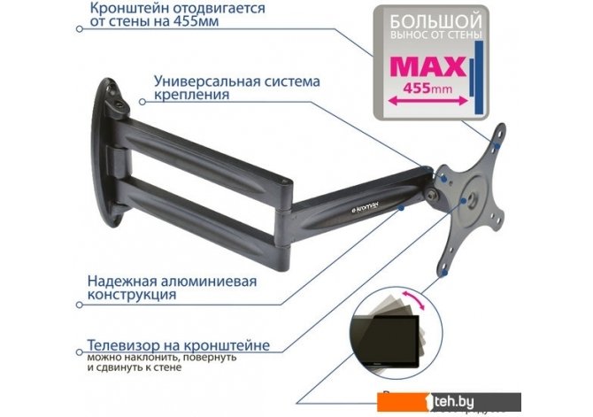 Фотографии, описание и технические характеристики модели кронштейна Kromax TECHNO-11 (черный) взяты из открытых источников, официального сайта производителя или представительства Kromax в Республике Беларусь.