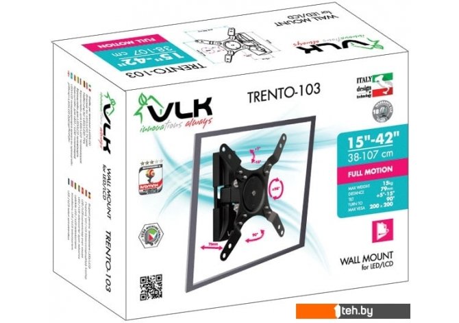 Фотографии, описание и технические характеристики модели кронштейна VLK TRENTO-103 (черный) взяты из открытых источников, официального сайта производителя или представительства VLK в Республике Беларусь.