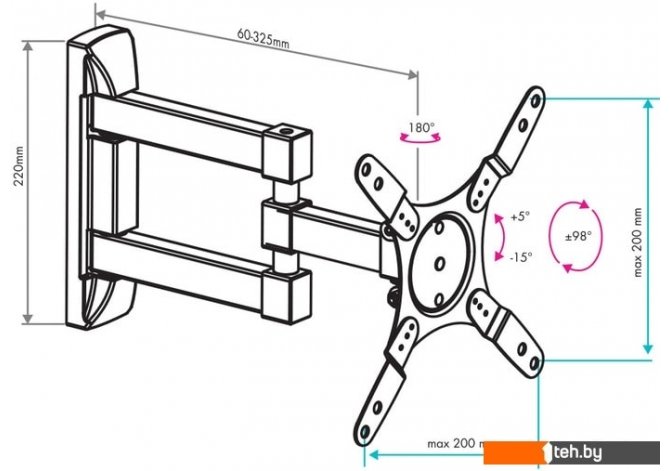 | Расстояние от стены (потолка) | 60 — 325 мм |