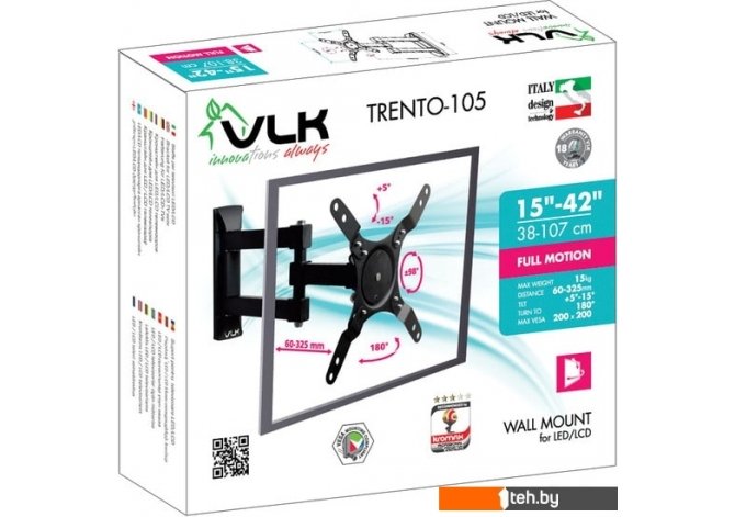 Фотографии, описание и технические характеристики модели кронштейна VLK TRENTO-105 (черный) взяты из открытых источников, официального сайта производителя или представительства VLK в Республике Беларусь.