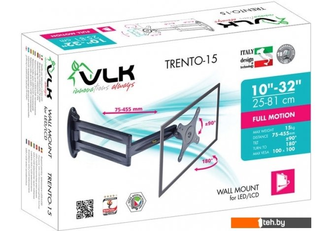 Фотографии, описание и технические характеристики модели кронштейна VLK TRENTO-15b (черный) взяты из открытых источников, официального сайта производителя или представительства VLK в Республике Беларусь.