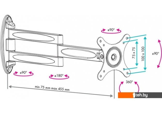 | Расстояние от стены (потолка) | 75 — 455 мм |
