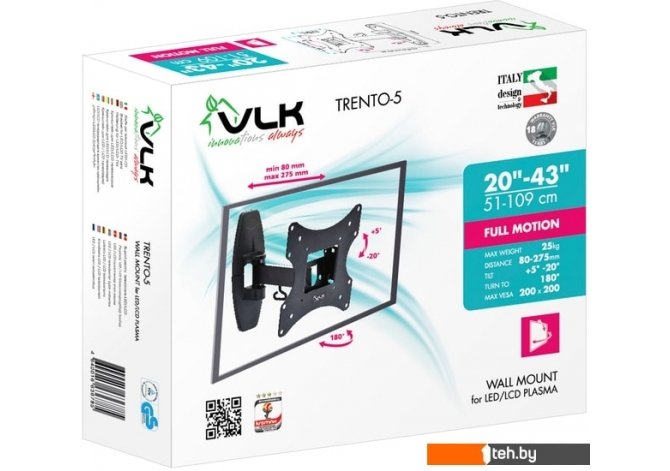 Если хотите купить кронштейн VLK TRENTO-5 (черный) то следует уточнить все параметры и габариты модели перед покупкой. Представленые характеристики на сайте 1teh.by могут отличаться от действительных или указанных производителем. Описание, фото товара и технические характеристики представлены для справки.